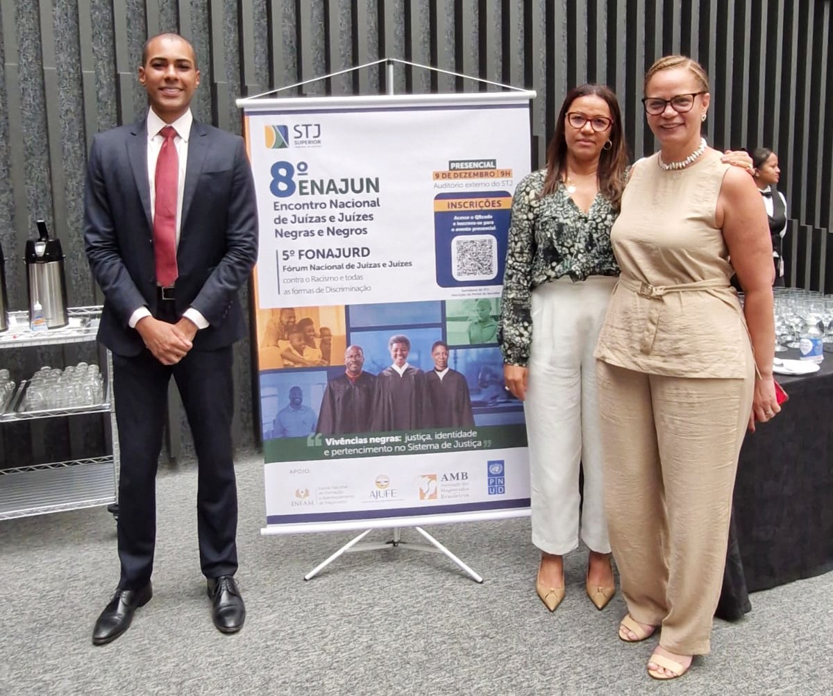 A juíza Kátia Cilene Bugarim representou a AMAERJ no 8º Encontro Nacional de Juízas e Juízes Negras e Negros (Enajun), que também contou com a participação dos juízes Leidejane Chieza e Vitor Porto, do Tribunal de Justiça do Rio de Janeiro (TJ-RJ). O evento aconteceu na terça-feira (9), no Superior Tribunal de Justiça (STJ), em Brasília.