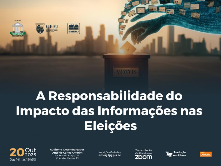 A Escola da Magistratura do Estado do Rio de Janeiro (EMERJ) promoverá, na segunda-feira (20), o seminário “A Responsabilidade do Impacto das Informações nas Eleições”, que contará com a participação da ministra Estela Aranha, do Tribunal Superior Eleitoral (TSE), e seis magistrados do Tribunal de Justiça do Rio de Janeiro (TJ-RJ).